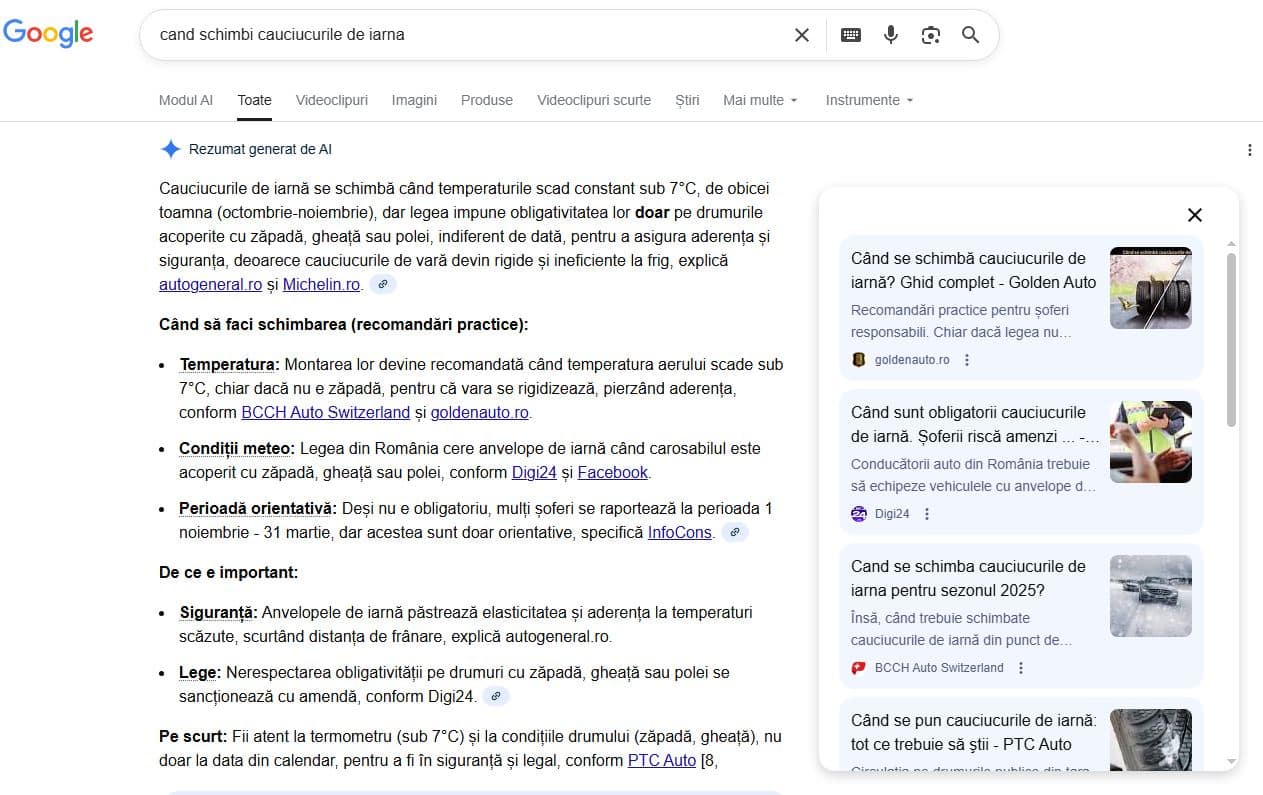 Iată un exemplu pe căutarea „cand schimbi cauciucurile de iarna”