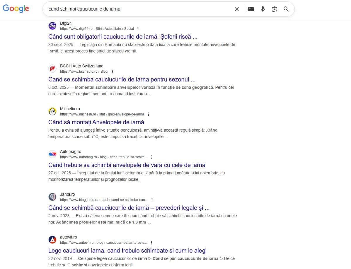 Iată un exemplu pe căutarea „cand schimbi cauciucurile de iarna”